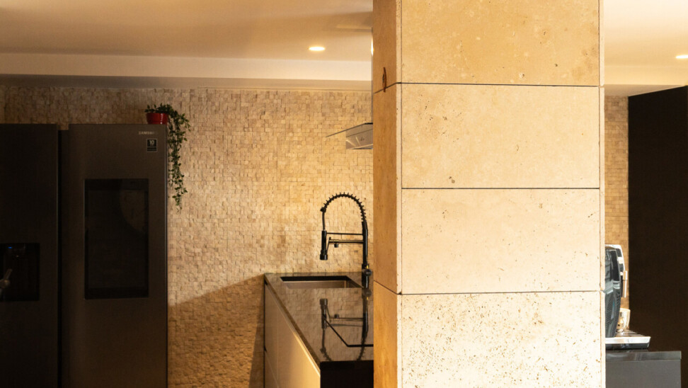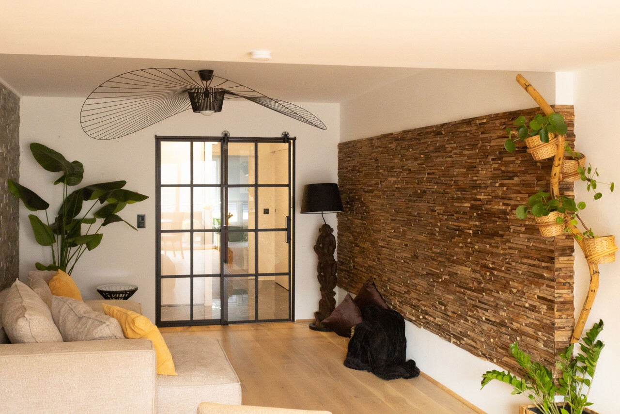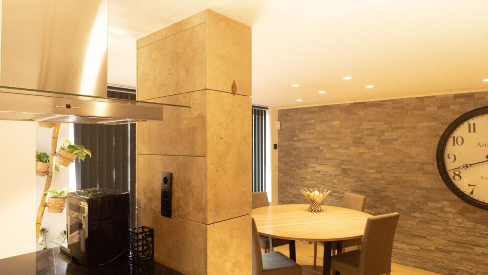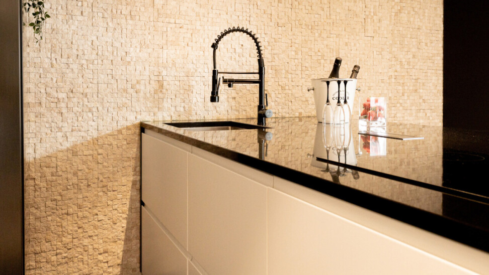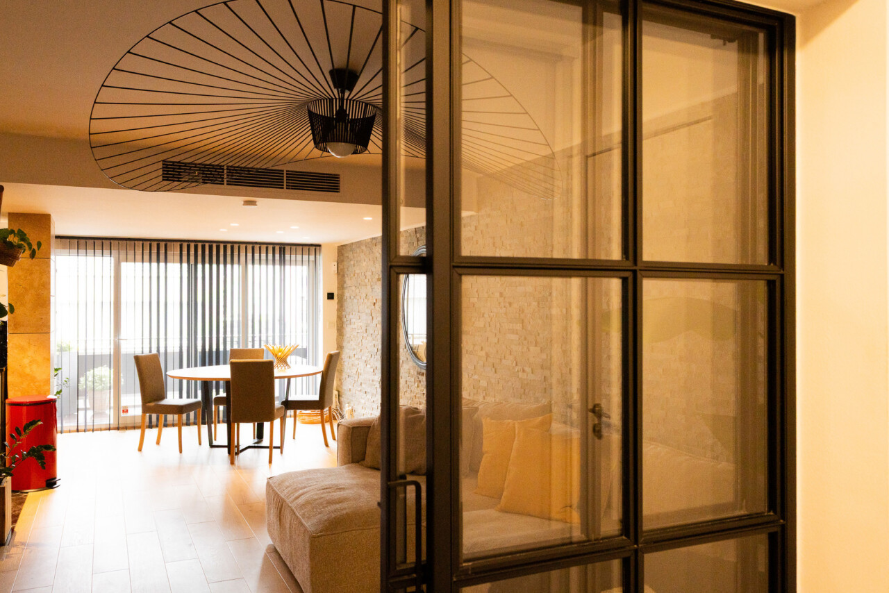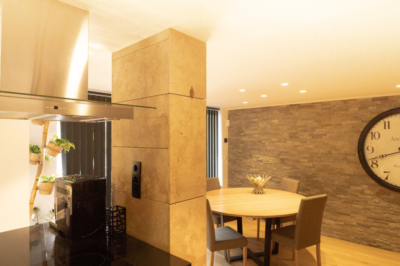 De lichtrijke leefruimte met grote schuiframen vormt het hart van het appartement en zorgt voor een naadloze verbinding met buiten. De open keuken met elegant kookeiland en granieten werkblad nodigt uit tot gezellige momenten en culinaire beleving.