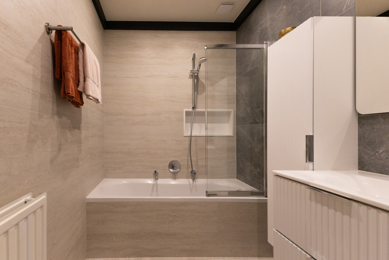 Het appartement telt twee volwaardige slaapkamers, een verzorgde badkamer met ligbad en een apart toilet. Vanuit beide slaapkamers heeft u rechtstreeks toegang tot het terras, waar u in alle rust kan genieten van een moment in openlucht.